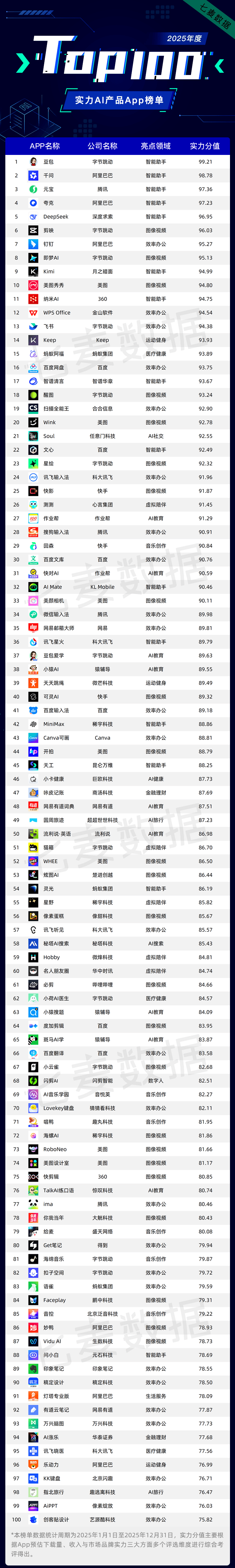 教育大模子、AI学伴、智能进修终端等手艺稠密落地,可高效完成写做、PPT 制做、海报设想、播客制做等多种办公取创做使命。以大模子为焦点的手艺迭代取产物立异动做稠密落地,跟着取阿里生态的持续融合,AI将从提拔效率的“东西”演变为沉塑出产关系的“根本架构”。以用户需求为焦点、场景闭环建立为支持、多模态交互为亮点的产物合作力系统逐渐成型。厂商间的合作维度已跳出单点功能比拼,能够预见,阿里旗下「千问」以亮眼表示占领Top2。该使用由豆包大模子驱动,有25款聚焦效率办公的App进榜,「千问」定位为 “阿里最强大模子AI帮手”,其依托华泰自研金融大模子取专业数据库,注:AI类硬件产物的使用和AI功能占比不高的产物暂未统计正在内。