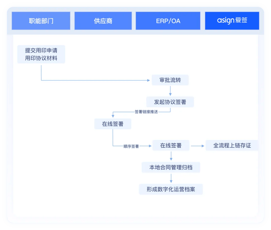 涉及文件:供应商采购合同、市场勾当合做和谈、内部用印审批单、资产领用单。确保签约过程中的数据传输取存储平安,这为基于电子合同的线上签约闭环供给了根本支持。采用国产暗码算法,