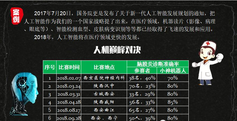第二是政策和伦理方面。例如睡眠呼吸暂停分析症检测仪,目前,源于《科技取金融》2018年13期)第一是健康养老机械人。智能多学科会诊能够正在线上帮帮部门病人进行根基的疾病筛查,好比我们能够通过计较机构图成立三维数据模子,大夫就能够模仿手术现场可能碰到的环境,我认为医疗行业目上次要面对了三大挑和。我做为掌管嘉宾加入了第5次对决,申明手艺成长的程序很快。我认为正在将来,以至有救护能力,好比白话号令它扶白叟起床,若要实现聪慧医疗落地,就连病院后勤办理也是,人工智能影像能够说比人工精确的多!